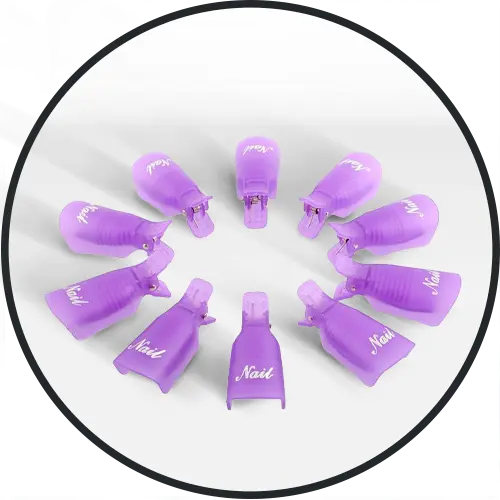10 pinces à ongles réutilisables, qui sécurisent les tampons de retrait pour une meilleure application.