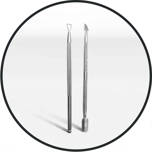 2 repousse-cuticules manucure en acier inoxydable, affûtés manuellement avec poignée antidérapante pour une excellente préhension.